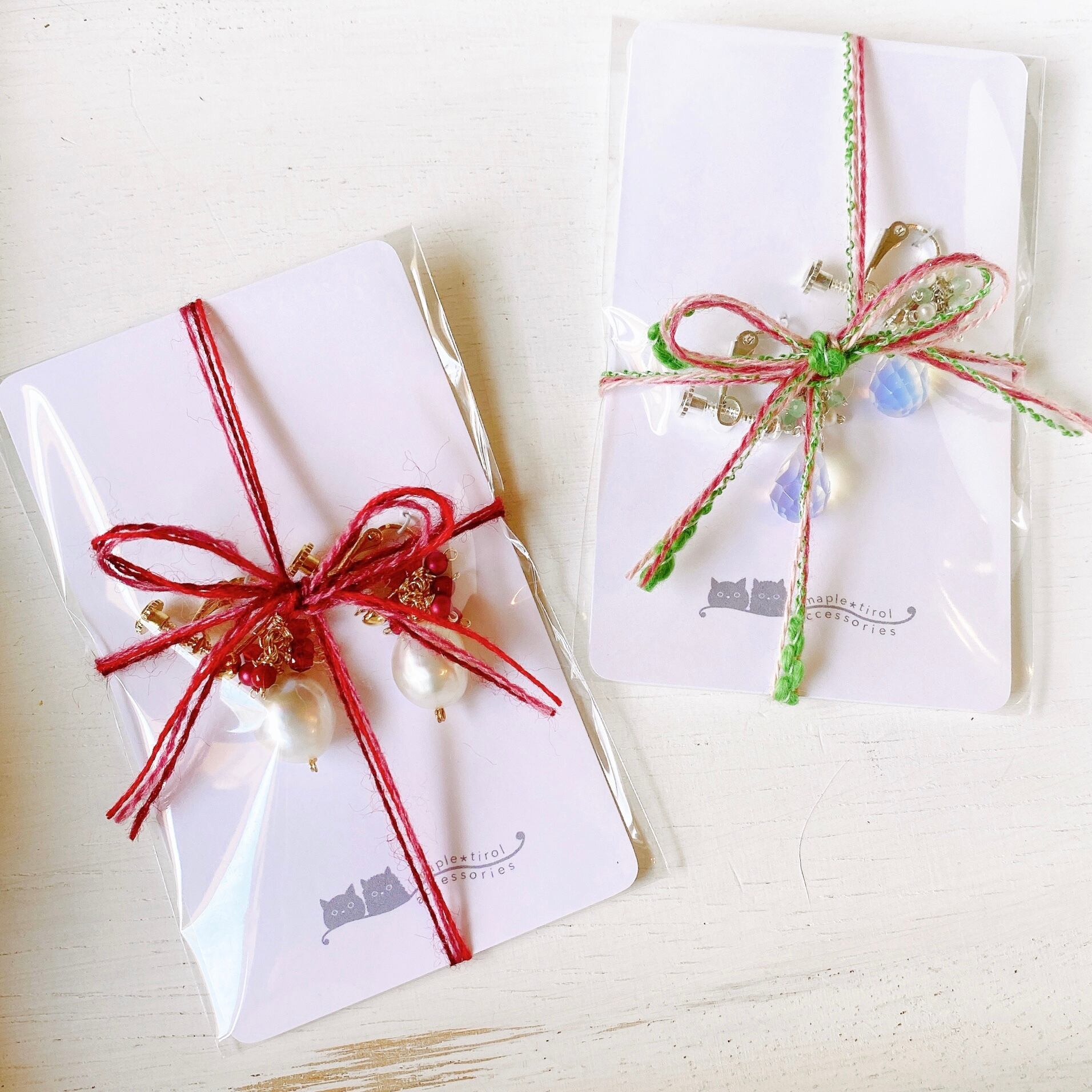 台紙につけopp袋に入れ、アクセサリーや季節に合わせた糸をお掛けします。